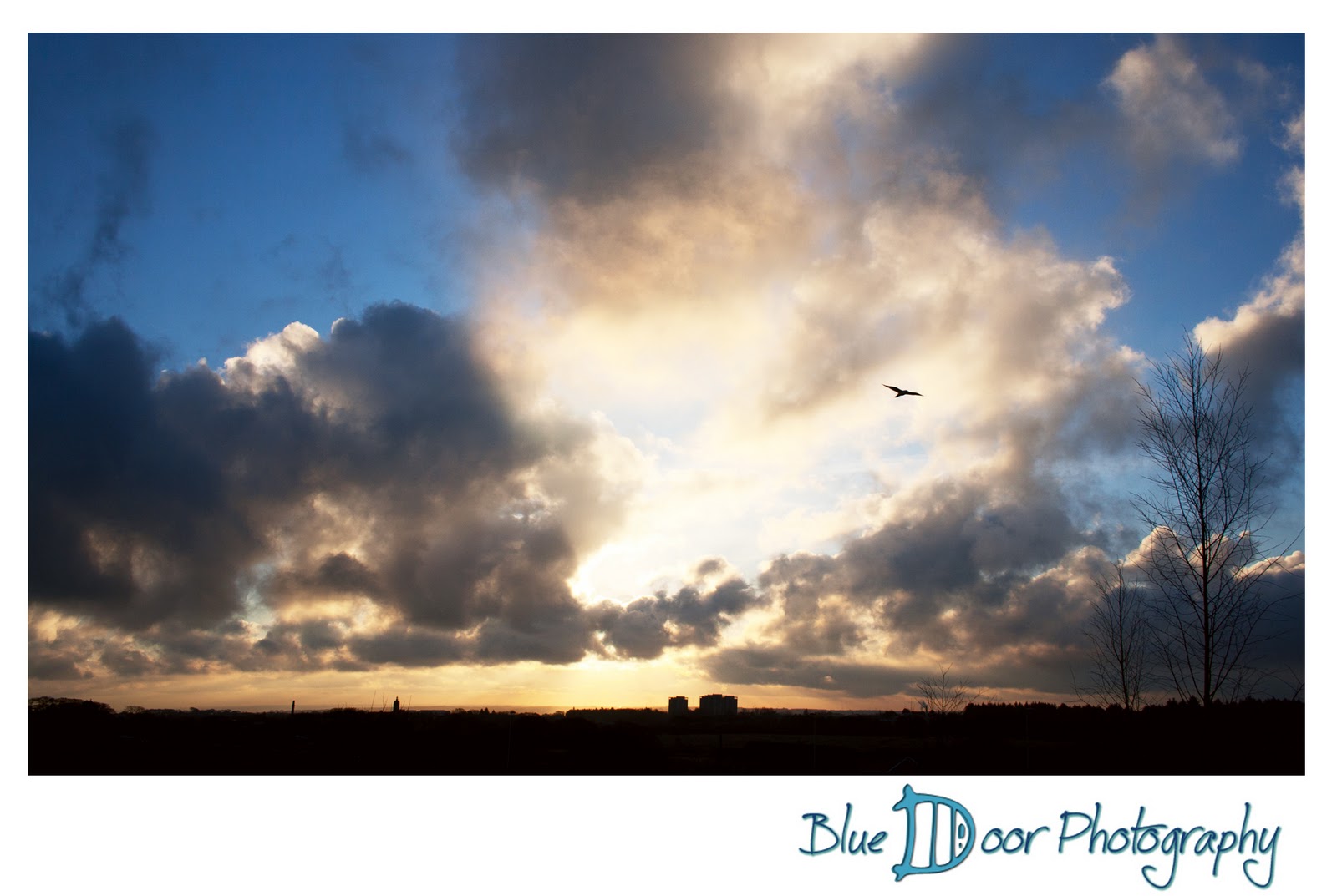 Today's photo was taken around 8:15am on my way to work. If I didn't have a car, that wouldn't have been possible. I am SO thankful to have a car!! As I was trudging along slowly through the traffic on the dual carriageway I realised that the sun was hitting the clouds Beauuuutifully. So I tried to think where I could pull over to get a good photo, since it would be unsafe to take a photo while driving...and the rear view mirror might ruin the shot. Hooray for Dobbies Garden Centre! Brap brap. (No idea where that came from...we'll just leave it...) The car park is up nice and high so I could miss out the road and get a semi decent photo...in fact, I think I'll put two photos up. One wiiiide one, and one zoooomedinny one :)